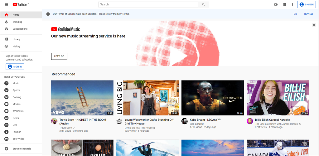 I love the way YouTube is designed. It gives you recommended videos on the home page for easy access and there’s a search bar as well.